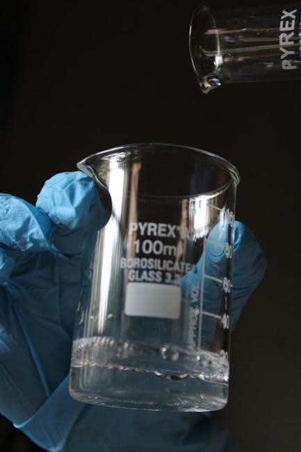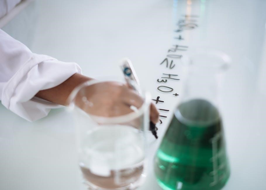 Proper handling and disposal of chemicals are crucial; never pipette by mouth and always follow waste disposal guidelines. Familiarize yourself with the location of safety equipment‚ such as fire extinguishers and eyewash stations. Report any spills or accidents immediately to the instructor.