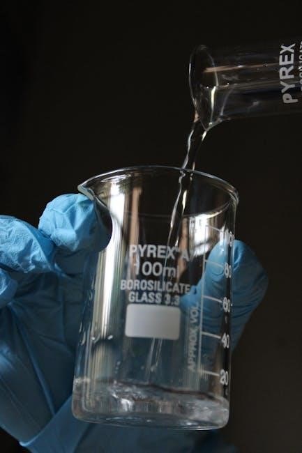 This experiment details frequently used chemicals in general chemistry labs‚ emphasizing safe handling and proper identification. Students will explore reagents like acids (hydrochloric‚ sulfuric)‚ bases (sodium hydroxide‚ ammonia)‚ and common salts (sodium chloride‚ potassium nitrate).
