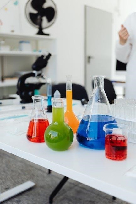 A well-equipped chemistry lab features various tools for accurate experimentation. Beakers are used for holding and mixing liquids‚ while Erlenmeyer flasks offer better mixing due to their conical shape. Bunsen burners provide controlled heat‚ and hot plates offer a safer alternative.
